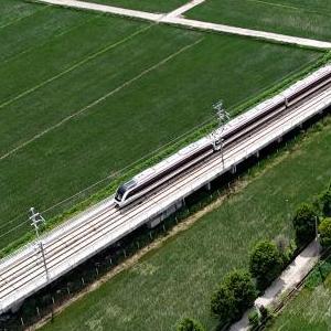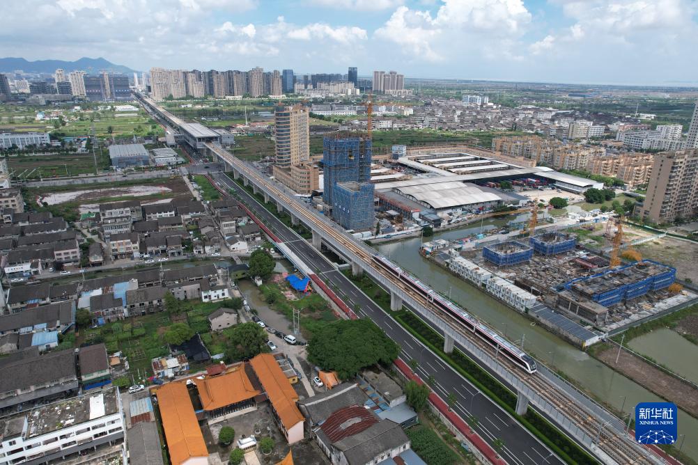 8月26日,溫州軌道交通S2線(xiàn)列車(chē)行駛在瑞安市路段(無(wú)人機照片)。