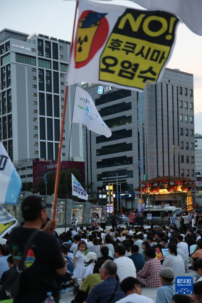 8月26日,市民在韓國釜山火車(chē)站廣場(chǎng)前參加集會(huì )。
