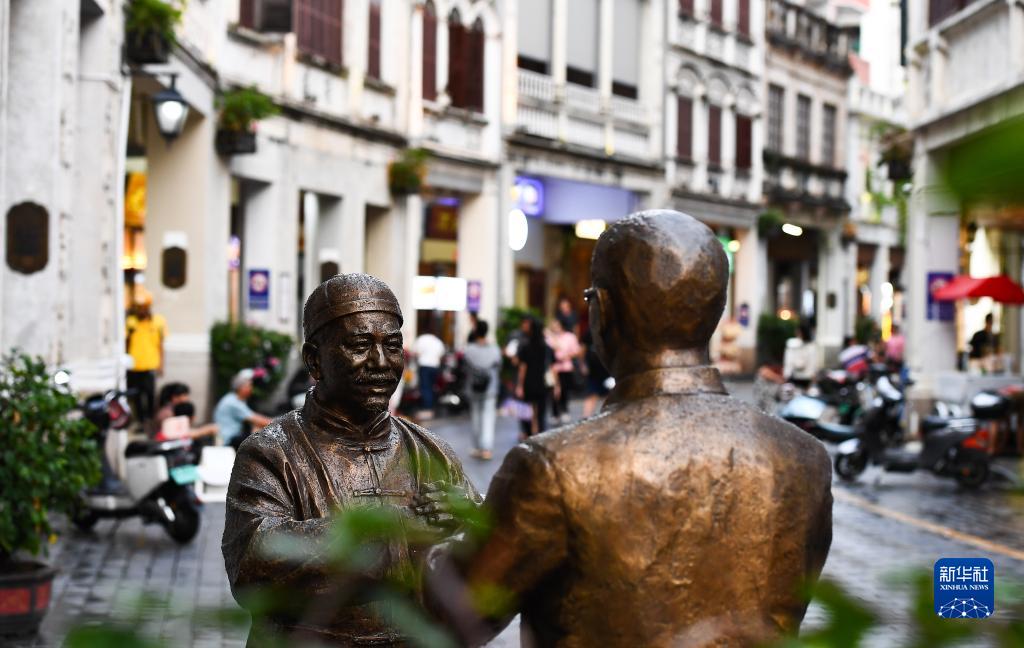 8月21日在??隍T樓老街拍攝的雕塑。