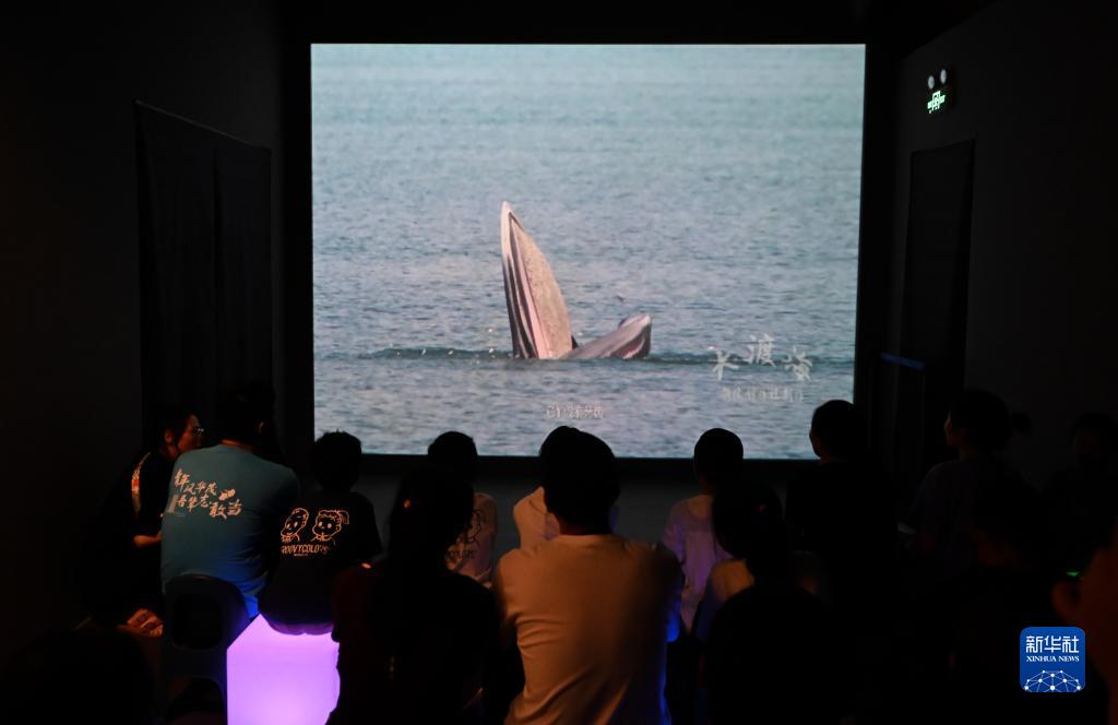 8月26日,游客在國家海洋博物館“鯨奇物語(yǔ)”展區觀(guān)看鯨魚(yú)相關(guān)科普視頻。