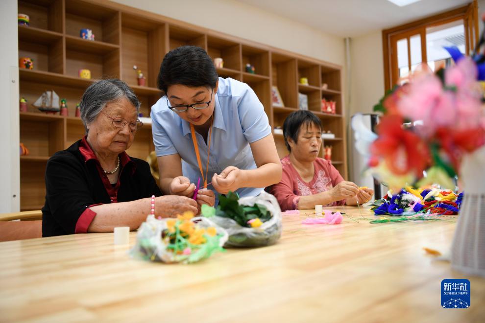 8月27日,在雙灤區一家養老服務(wù)中心,老人在工作人員指導下制作手工。