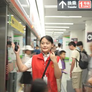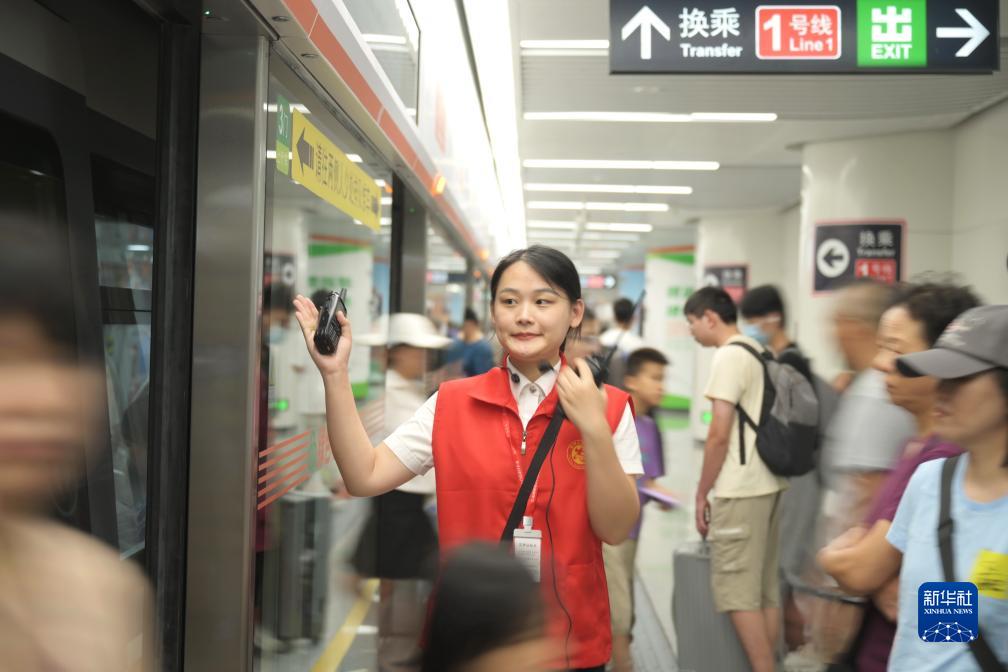 8月27日,工作人員在福州東街口站1號線(xiàn)與4號環(huán)線(xiàn)換乘處值班。