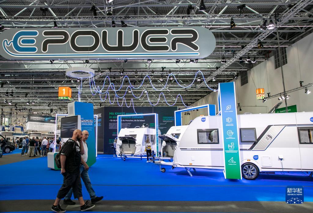 8月28日,人們在德國杜塞爾多夫國際房車(chē)展上走過(guò)一個(gè)新能源房車(chē)展臺。