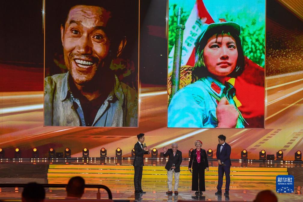 8月28日,演員牛犇(左二)、祝希娟(右二)在第十八屆中國長(cháng)春電影節開(kāi)幕式現場(chǎng)致辭。