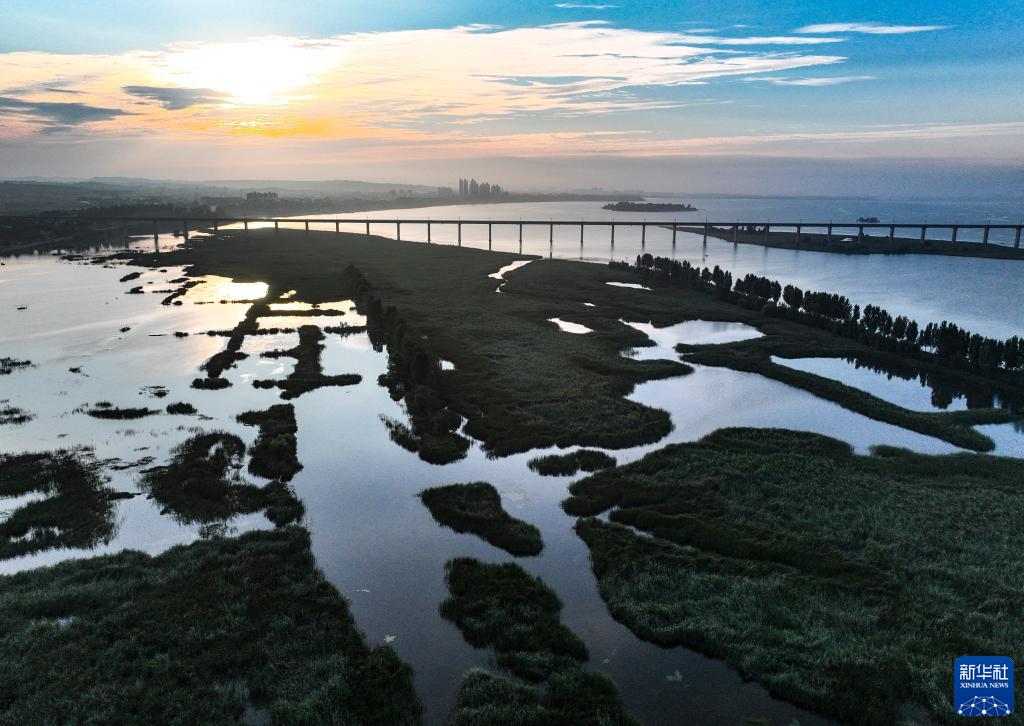 這是8月28日在河南黃河濕地國家級自然保護區濟源段拍攝的景色(無(wú)人機照片)。