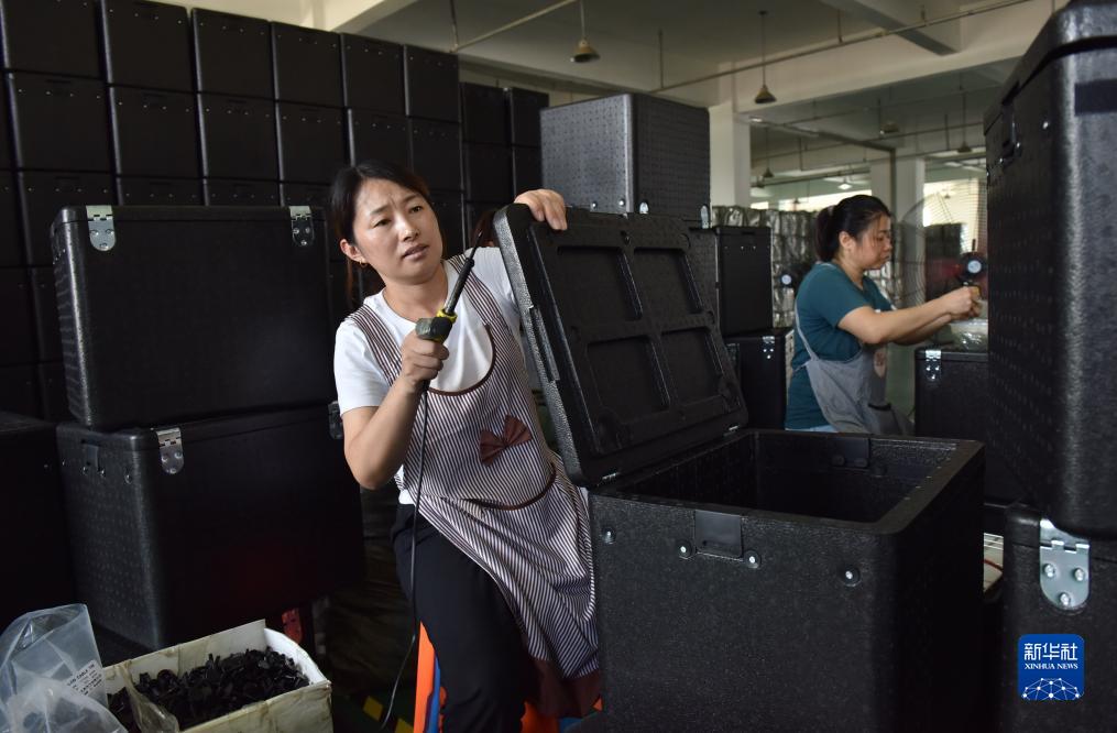 8月29日,工人在河北省威縣姜七里村一家箱包廠(chǎng)加工箱包。