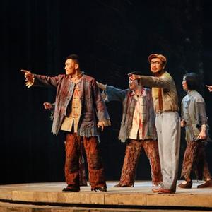 8月29日晚,演員在蘭州音樂(lè )廳表演新版紅色兒童劇《大豆謠》。