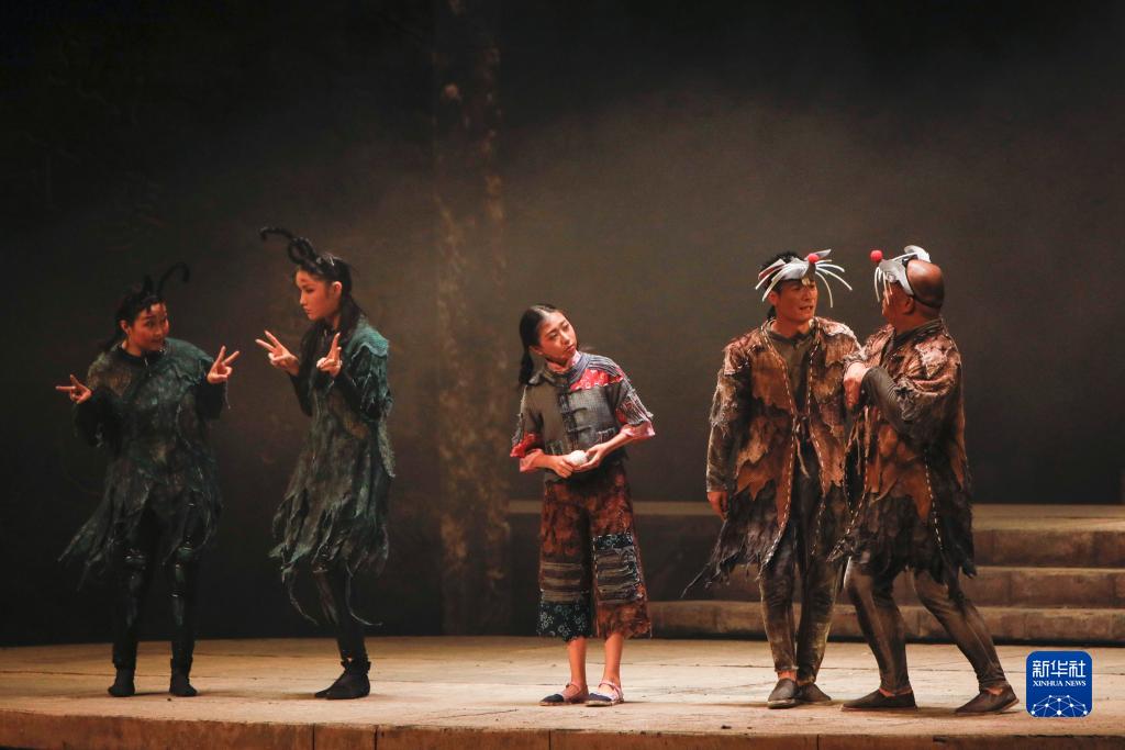 8月29日晚,演員在蘭州音樂(lè )廳表演新版紅色兒童劇《大豆謠》。