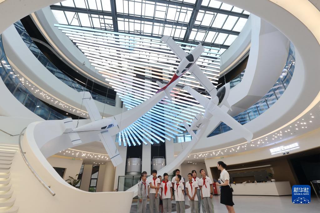 8月30日,在德清縣通航智造小鎮通用航空科普體驗館,雷甸鎮中心小學(xué)學(xué)生在參觀(guān)航空科普展品。