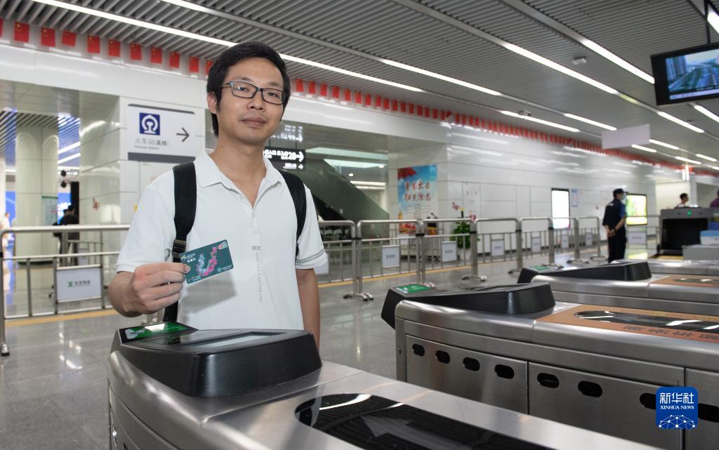 8月30日,在深圳福田站地鐵閘機入口,用戶(hù)持深港互通行卡準備刷卡。