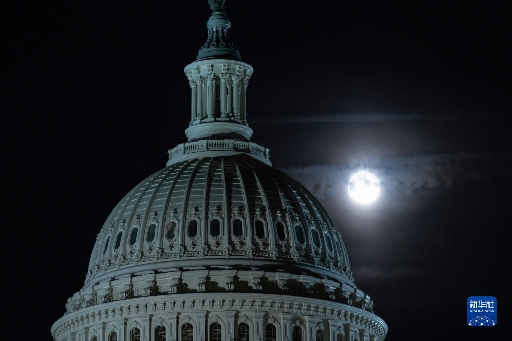 8月30日,“超級月亮”在美國華盛頓國會(huì )上空升起。