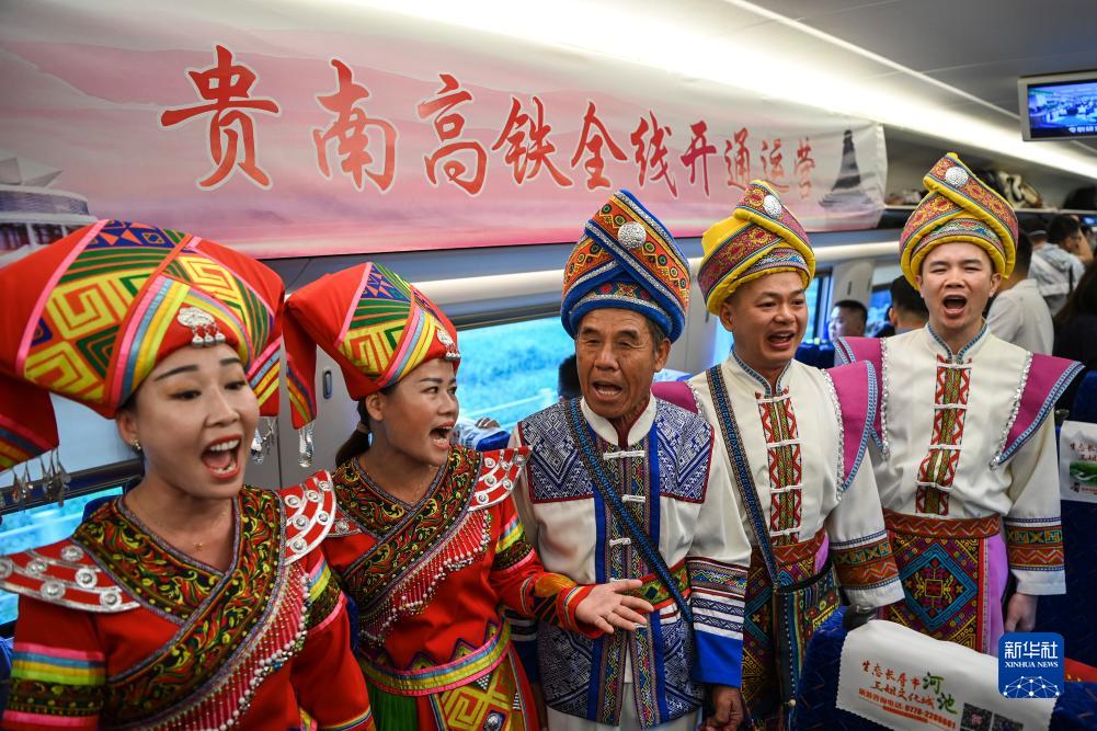 8月31日,少數民族群眾在由南寧東開(kāi)往貴陽(yáng)北的G4308次列車(chē)上唱山歌。
