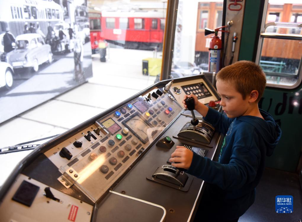 8月30日,在奧地利維也納交通博物館,一名男孩體驗地鐵列車(chē)的駕駛室。