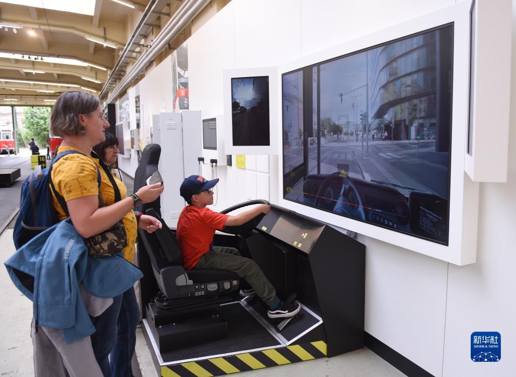 8月30日,在奧地利維也納交通博物館,觀(guān)眾模擬體驗有軌電車(chē)駕駛。