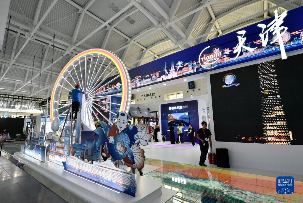 8月31日,在國家會(huì )展中心(天津),工作人員布置天津展區。
