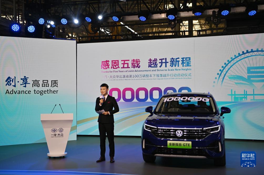 8月31日在天津經(jīng)濟技術(shù)開(kāi)發(fā)區一汽-大眾華北基地拍攝的儀式現場(chǎng)。