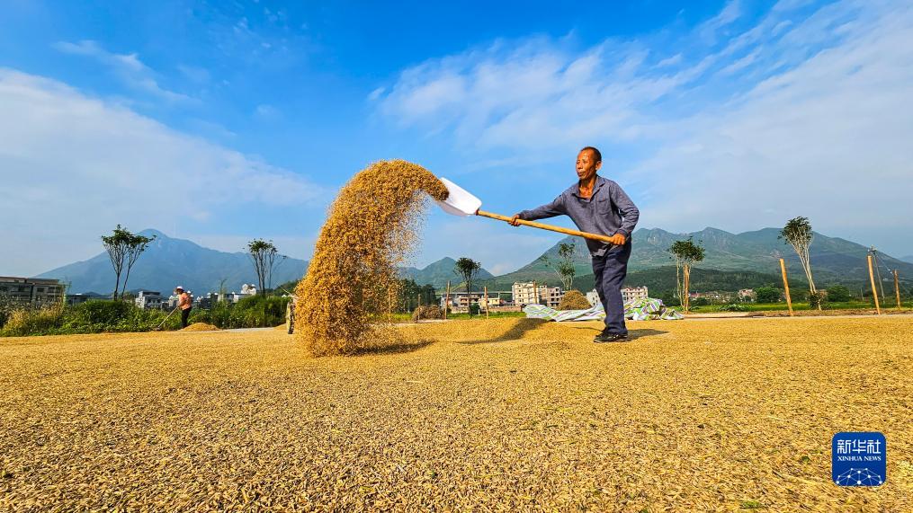 初秋時(shí)節,各地農民搶抓晴好天氣,加緊收獲、晾曬農作物。