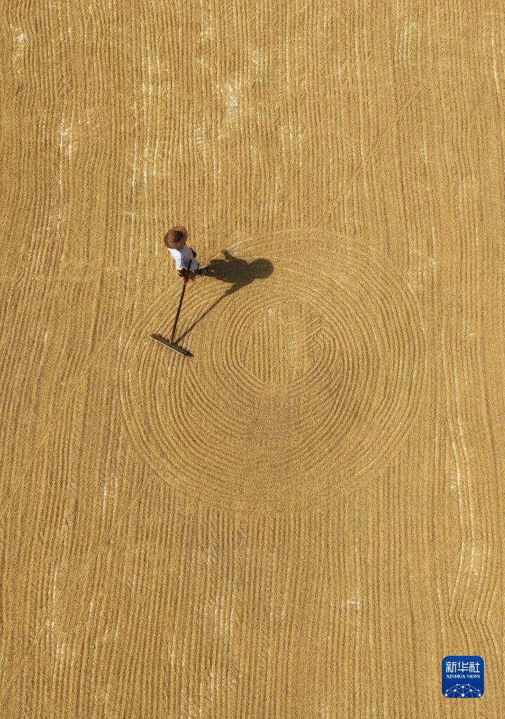 初秋時(shí)節,各地農民搶抓晴好天氣,加緊收獲、晾曬農作物。