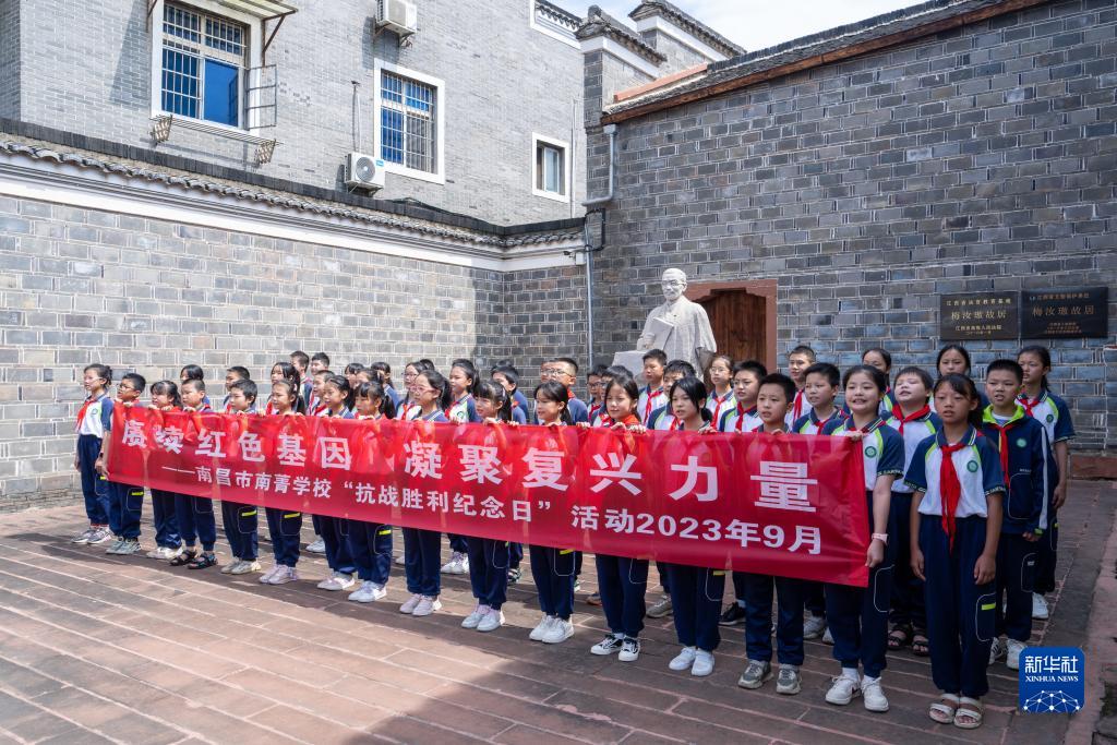 9月1日,在“東京審判”中國大法官梅汝璈故居,參加“開(kāi)學(xué)第一課”的南昌市青云譜區南菁學(xué)校學(xué)生開(kāi)展“賡續紅色基因、凝聚復興力量”為主題的紀念活動(dòng)。