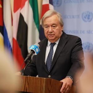 8月31日,聯(lián)合國秘書(shū)長(cháng)古特雷斯在位于紐約的聯(lián)合國總部舉行的新聞發(fā)布會(huì )上講話(huà)。