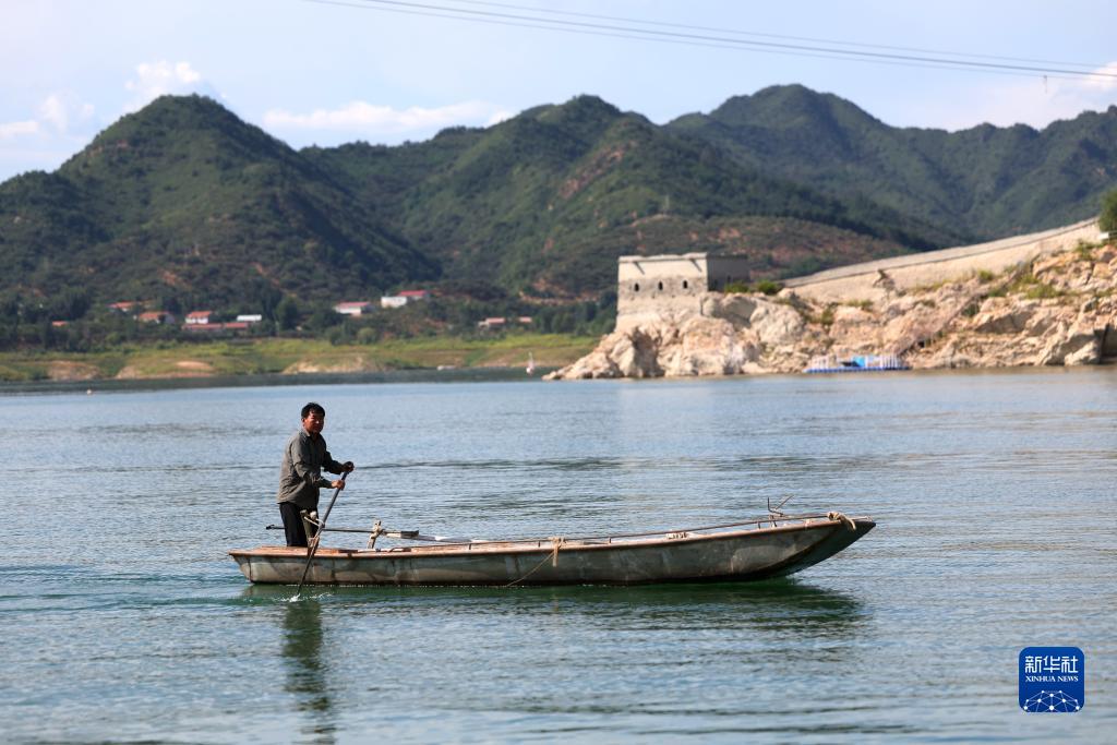 8月30日,衡丙三在潘家口水庫上劃船行駛,準備巡查長(cháng)城。