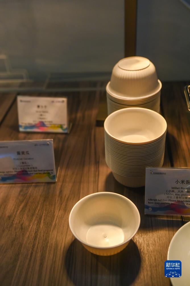這是主媒體中心媒體記者餐廳內使用的可降解環(huán)保餐具(9月1日攝)。