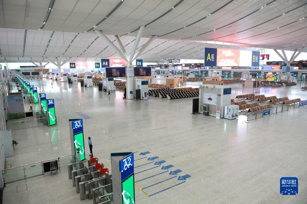 9月1日,在深圳北站,工作人員在進(jìn)站口前值守。1日11時(shí)10分起,進(jìn)出深圳地區所有車(chē)站的列車(chē)全部停運。