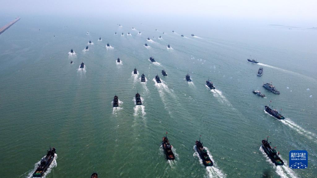 當日,為期四個(gè)月的黃渤海伏季休漁結束,所涉漁區迎來(lái)“開(kāi)?!?,各漁港碼頭千帆競發(fā),漁船出海進(jìn)行捕撈作業(yè)。