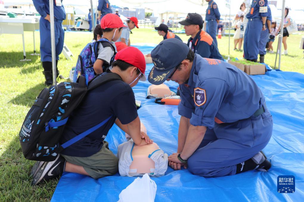 9月1日,在日本神奈川縣相模原市,兒童學(xué)習急救技能。