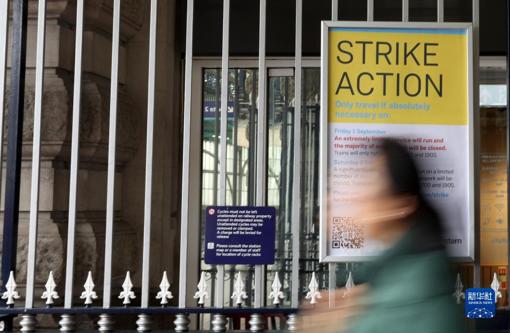 因在收入、工作條件等方面與鐵路運營(yíng)企業(yè)存在分歧,英國鐵路員工在9月1日、2日舉行罷工。由于鐵路服務(wù)大幅減少,人們出行面臨不便。