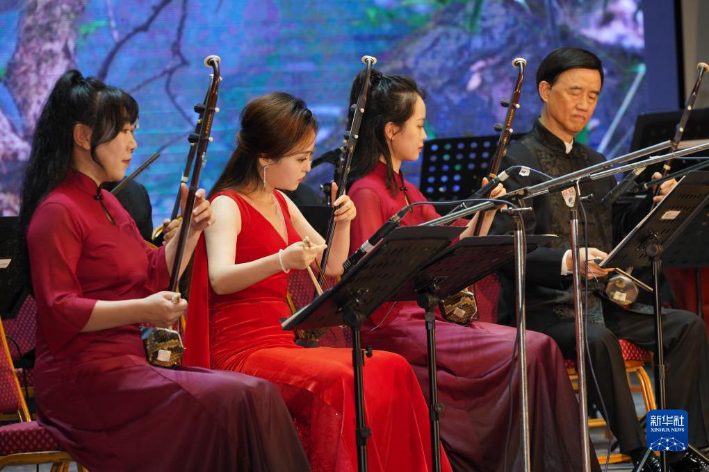 8月31日,演奏者在尼泊爾首都加德滿(mǎn)都的“絲路花語(yǔ)”中國民族音樂(lè )專(zhuān)場(chǎng)演出上奏樂(lè )。