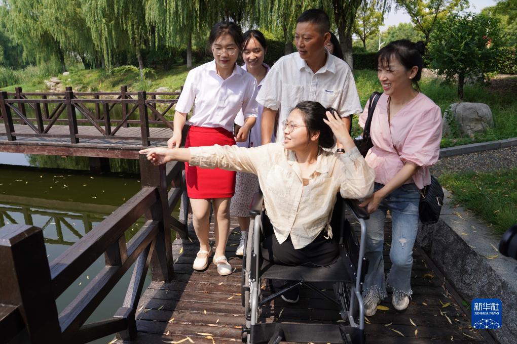 近日,被網(wǎng)友關(guān)注的江西上饒的“無(wú)腿女孩”蔣張子怡在爸爸媽媽的陪伴下來(lái)到山東臨沂大學(xué)報到。為讓子怡能在學(xué)校安心踏實(shí)地學(xué)習,媽媽決定陪伴在女兒身邊。學(xué)校為此專(zhuān)門(mén)安排了單獨的寢室供母女生活,還讓媽媽在學(xué)校做保潔工作以減輕生活壓力,學(xué)長(cháng)學(xué)姐們也成立了志愿服務(wù)隊照顧子怡出行。
