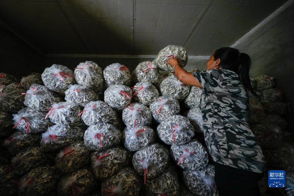9月2日,農民在河北省遷西縣白廟子鎮黑洼村栗磨種植基地內整理栗蘑干。