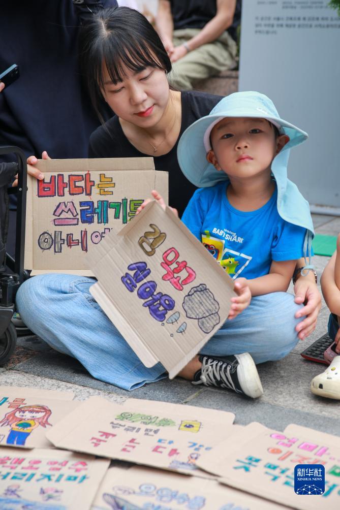 當日,韓國多個(gè)市民團體在首爾市中心舉行集會(huì ),抗議日本核污染水排海。