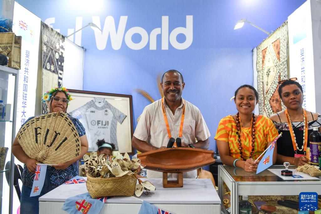 9月2日,在“一帶一路”沿線(xiàn)國家特色文化展示活動(dòng)上,斐濟共和國駐華大使館展區的工作人員展示特色樂(lè )器。