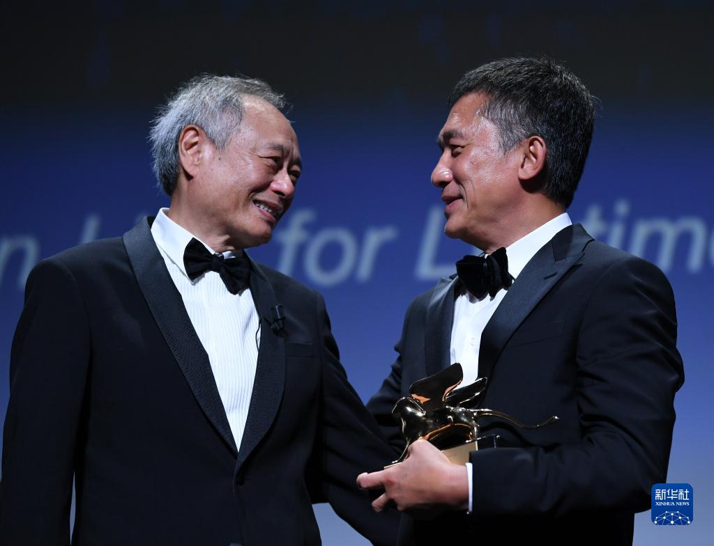 9月2日,在意大利威尼斯,導演李安(左)和演員梁朝偉出席頒獎儀式。