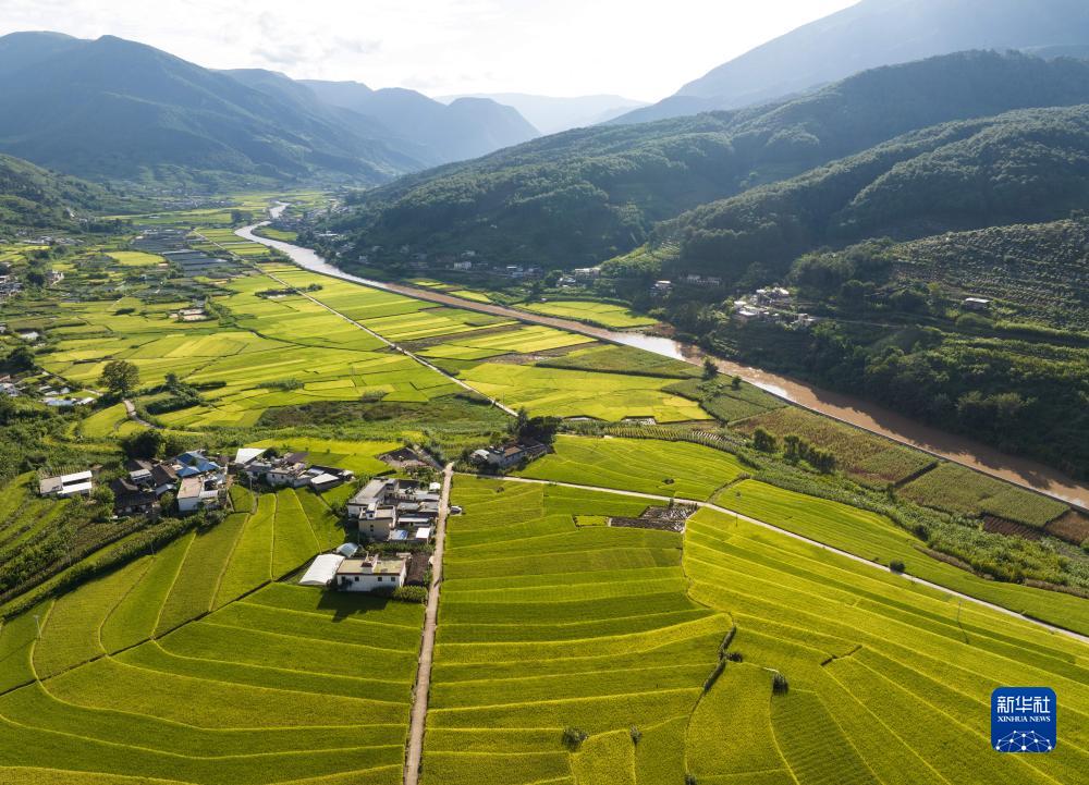 俯瞰鹽邊縣惠民鎮烏木河兩岸稻田(9月2日攝,無(wú)人機照片)。