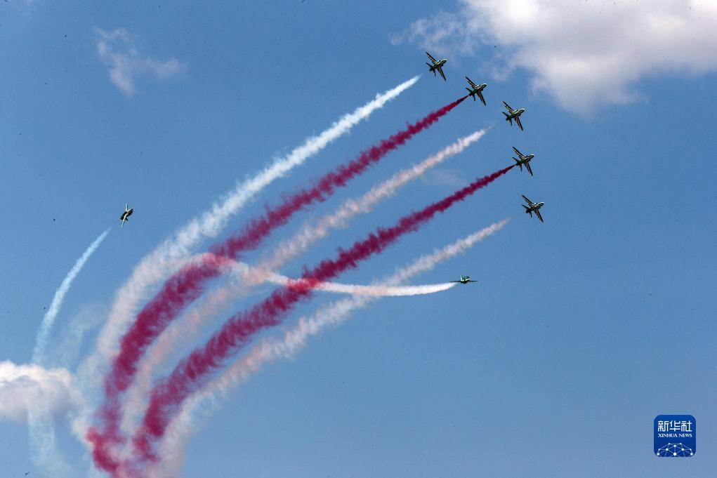 9月2日,在希臘塔納格拉空軍基地的雅典飛行周上,來(lái)自沙特阿拉伯的飛行表演隊進(jìn)行表演。