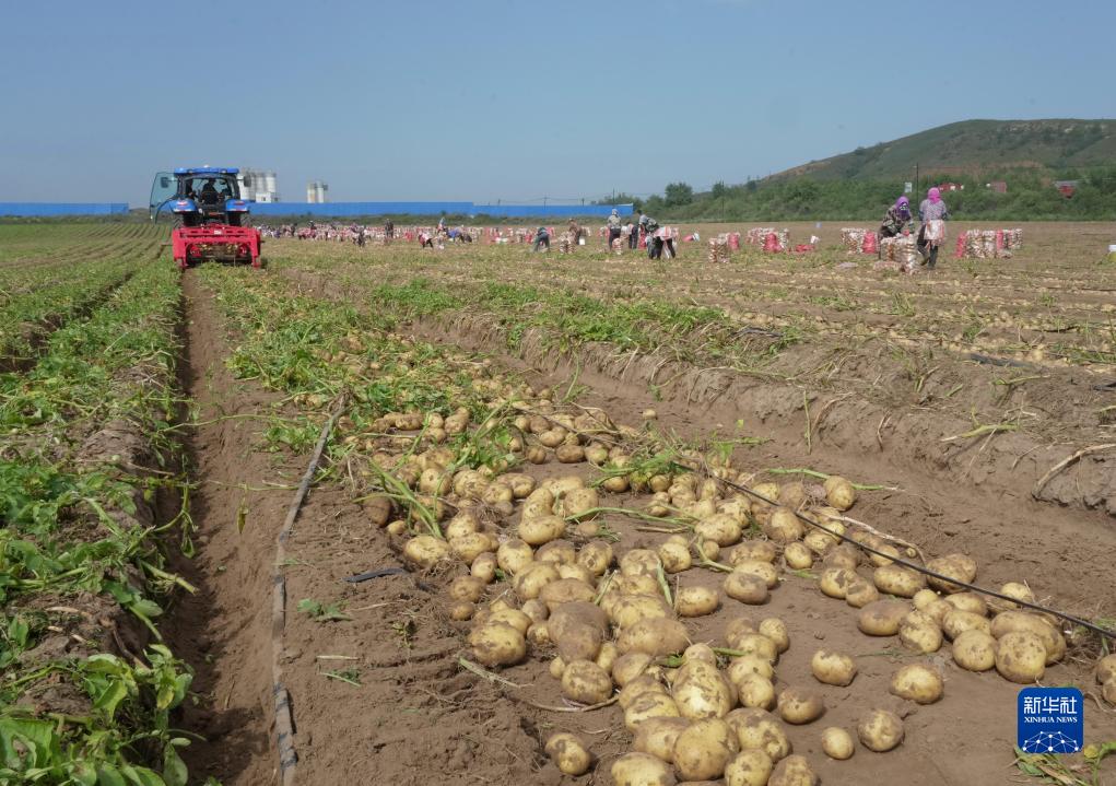 9月3日,河北省圍場(chǎng)滿(mǎn)族蒙古族自治縣御道口鎮御道口村一家馬鈴薯種植合作社社員在收獲馬鈴薯。