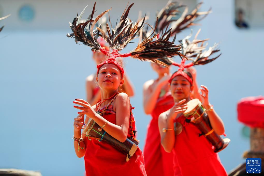 9月3日,中國海軍“和平方舟”號醫院船抵達東帝汶帝力港,當地民眾表演特色歌舞歡迎。