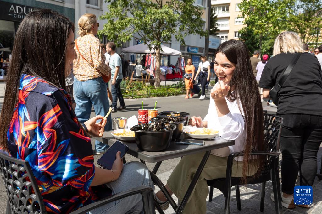 9月3日,在法國里爾舊貨市場(chǎng)上,人們品嘗貽貝。