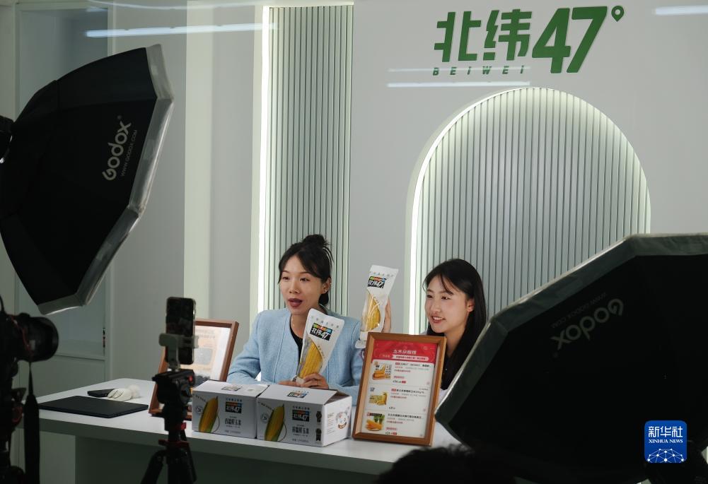 9月2日,在位于齊齊哈爾市依安縣的北緯四十七綠色有機食品有限公司,主播通過(guò)網(wǎng)絡(luò )平臺銷(xiāo)售鮮食玉米。