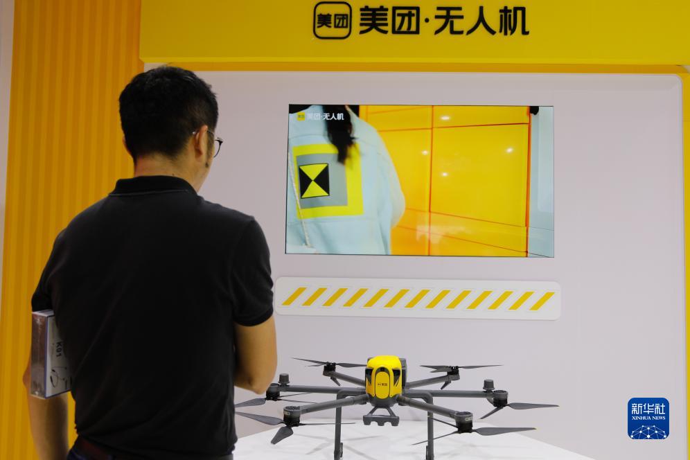 9月4日,在2023年服貿會(huì )國家會(huì )議中心美團展臺,觀(guān)眾參觀(guān)一款無(wú)人機。