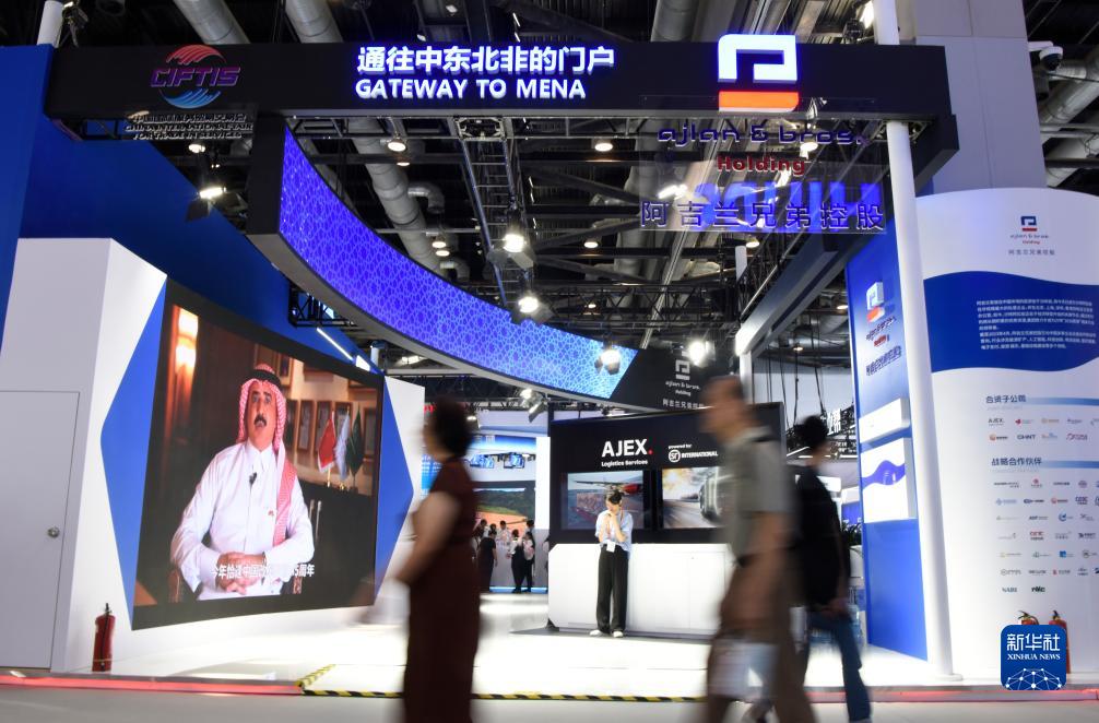 9月4日,觀(guān)眾從服貿會(huì )的沙特阿拉伯阿吉蘭兄弟控股集團展臺經(jīng)過(guò)。