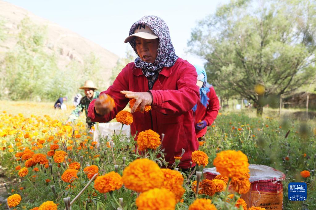 9月4日,農民在甘肅省定西市隴西縣馬河鎮賀家川村采摘萬(wàn)壽菊。