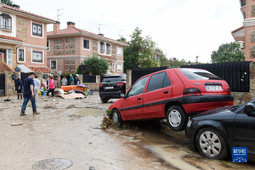 9月4日,居民在西班牙馬德里比利亞曼塔鎮清理淤泥。