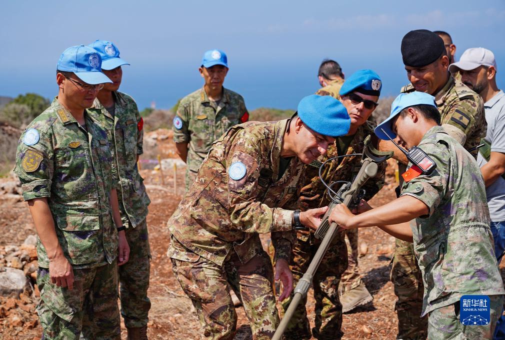 9月4日,在黎巴嫩南部“藍線(xiàn)”附近雷場(chǎng),聯(lián)合國駐黎巴嫩臨時(shí)部隊(聯(lián)黎部隊)西區司令喬瓦尼·布拉法準將(前右二)查看探雷器。