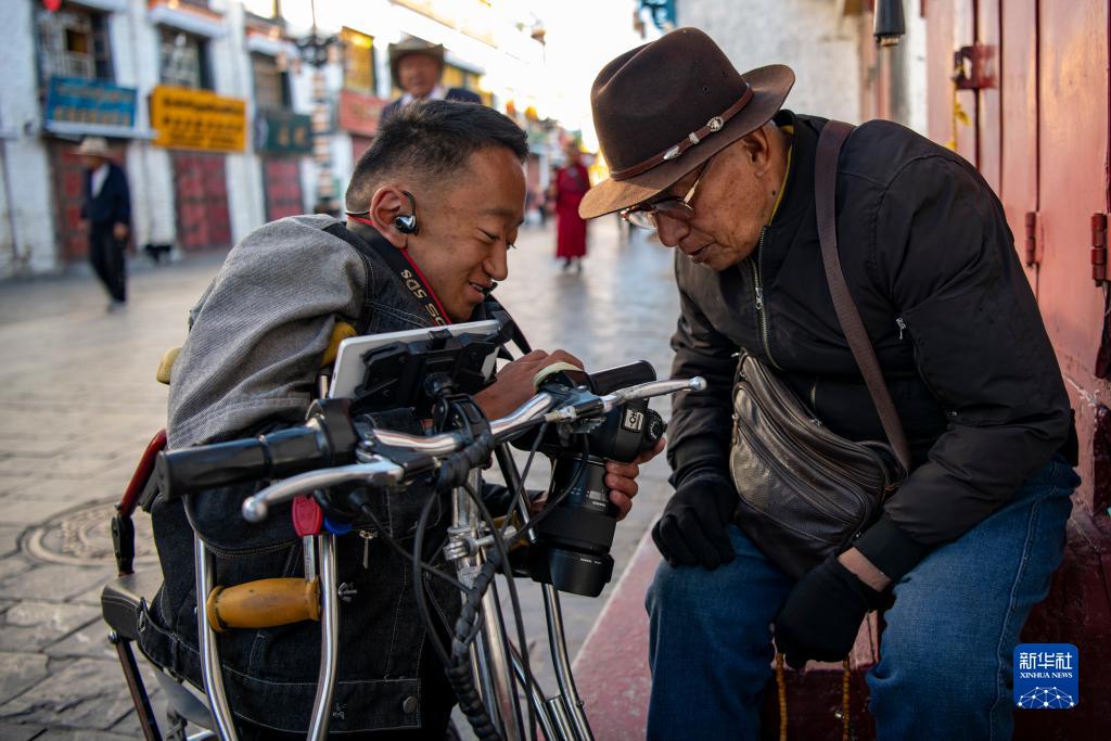 2017年,拉巴頓珠進(jìn)入拉薩市殘疾人托養中心生活,日子過(guò)得安定有保障,但他說(shuō):“我還年輕,我也有夢(mèng)想,我想靠自己的勞動(dòng)養活自己?!?托養中心為殘疾人開(kāi)設了多種課程,拉巴頓珠選擇了自己最感興趣的攝影和視頻制作。2021年,他離開(kāi)托養中心,找到肢體殘疾的創(chuàng )業(yè)者覺(jué)列,到其開(kāi)辦的文化傳播公司負責攝影和視頻制作,開(kāi)始了自食其力的生活。