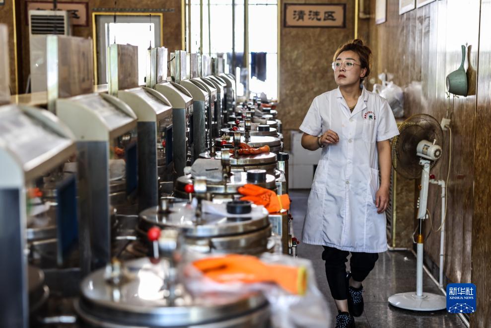 9月5日,在文登區人民醫院醫共體中藥配送中心,工作人員在制備中藥。