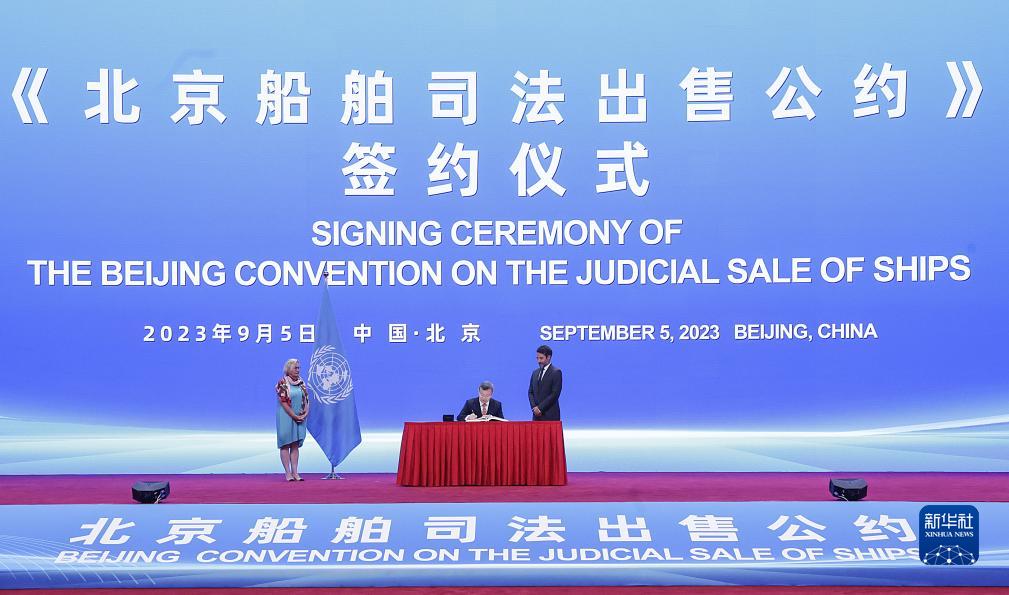 9月5日,中國代表在《北京船舶司法出售公約》簽約儀式上簽字。